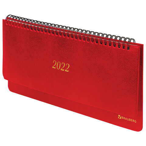 Планинг датированный 2022 305х140 мм BRAUBERG 'Iguana', под кожу, красный, 112717