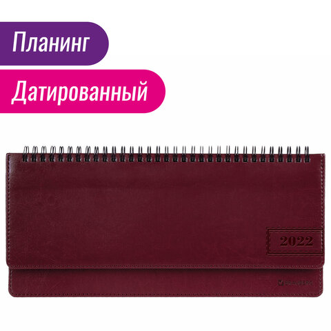 Планинг датированный 2022 305х140 мм BRAUBERG 'Imperial', под кожу, бордовый, 112719