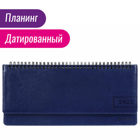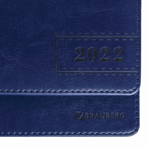 Планинг датированный 2022 305х140 мм BRAUBERG 'Imperial', под кожу, синий, 112720