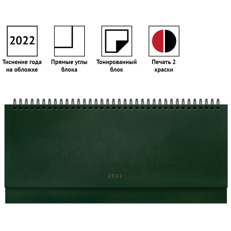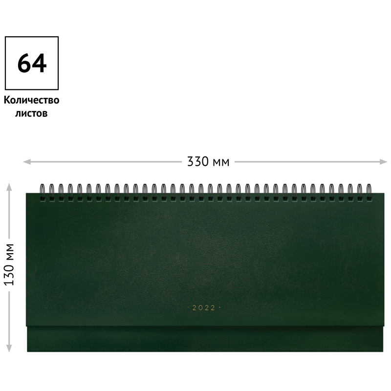 Планинг датированный 2022г., 330*130мм, 64л., кожзам, OfficeSpace 'Windsor ', зеленый
