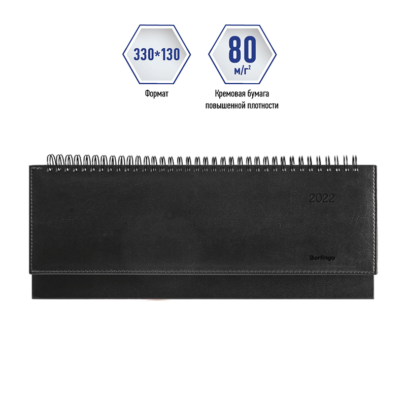 Планинг датированный 2022г., 64л., 330*130мм, кожзам, Berlingo 'Silver Pristine', черный