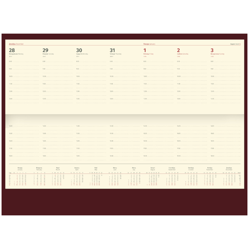 Планинги Berlingo xGold изготовлены из глянцевого рельефного кожзаменителя, имитирующего кожу первоклассной выделки. Планинг датированный формата - 330*140 мм на скрытой спирали с обложкой с поролоновой прослойкой и прострочкой по периметру. Золотой фольгированный срез. Цвет обложки - бордовый. Высококачественная кремовая бумага повышенной плотности 80 г/м2, пантонная печать блока в 2 краски.