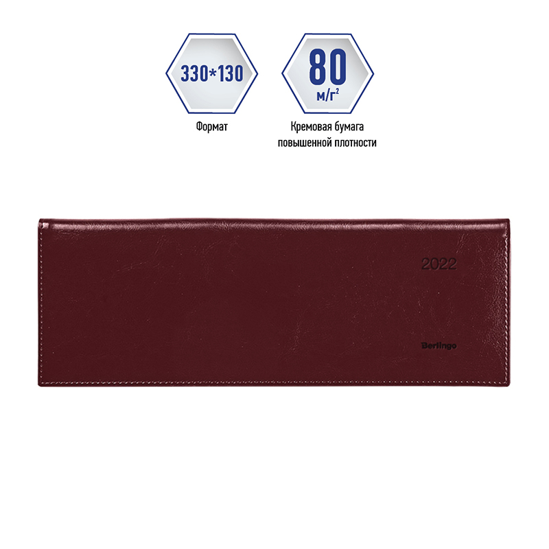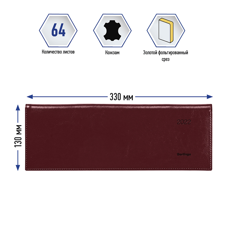 Планинг датированный 2022г., 64л., 330*140мм, кожзам, Berlingo 'xGold', бордов, зол.срез