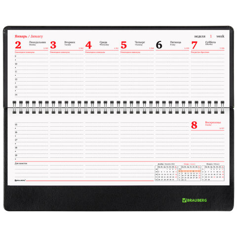 Планинг датированный 2023 305х140 мм BRAUBERG 'Chameleon', под кожу, черный/зеленый, 114000