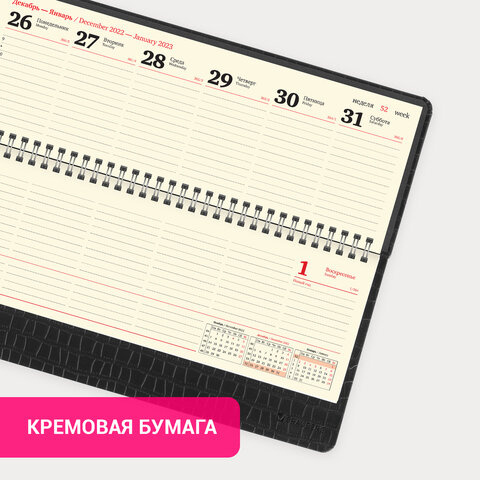 Планинг датированный 2023 305х140 мм BRAUBERG 'Comodo', под кожу, черный, 113988