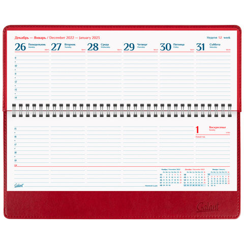 Планинг датированный 2023 305х140 мм GALANT 'Ritter', под кожу, красный, 114001