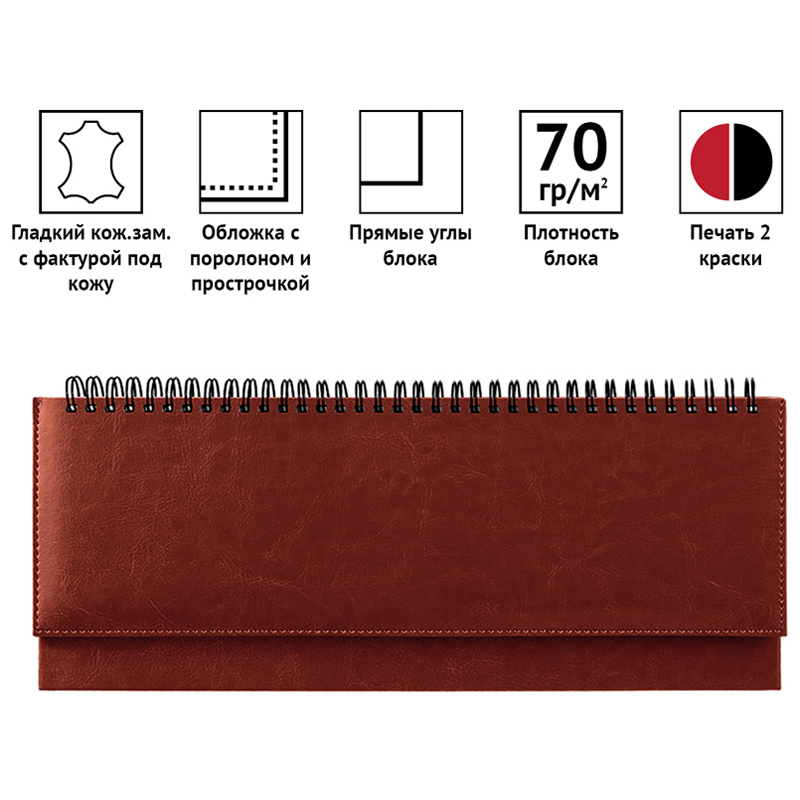Планинг датированный формата 330*130 мм из коллекции «Nebraska». Обложка изготовлена из высококачественного переплетного материала с поролоновой прослойкой, цвет обложки - коричневый. Подходит для всех видов полиграфического тиснения. Внутренний блок состоит из 64 листов офсетной бумаги плотностью 70 г/м2, печать блока в 2 краски, календарь на 4 года, телефонная книжка.