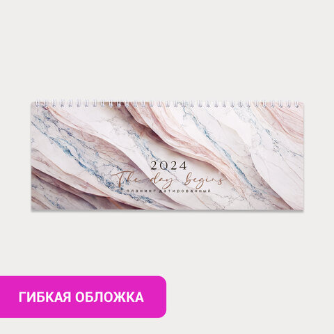 Планинг датированный 2024 285х112 мм, STAFF, гребень, картонная обложка, 64 л., 'Marble', 115151