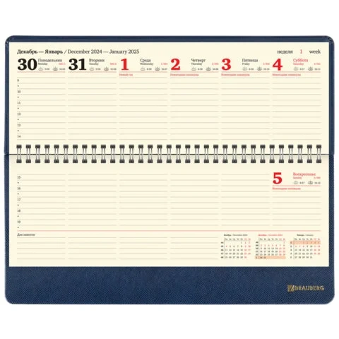Планинг датированный 2025 305х140 мм BRAUBERG 'Iguana', под кожу, синий, 115695