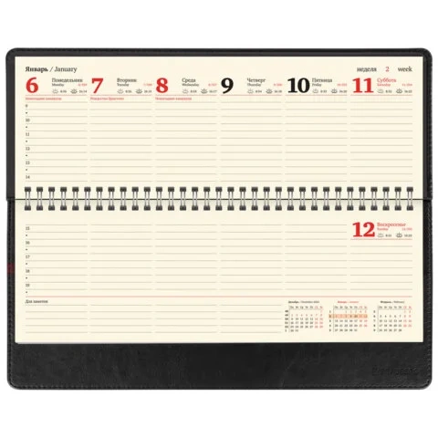 Планинг датированный 2025 305х140 мм BRAUBERG 'Imperial', под кожу, черный, 115698