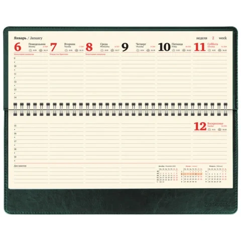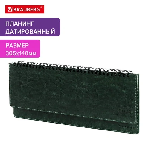 Планинг датированный 2025 305х140 мм BRAUBERG 'Imperial', под кожу, зеленый, 115699