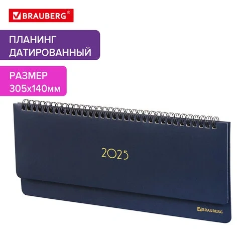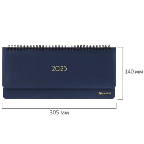 Планинг датированный 2025 305х140 мм BRAUBERG 'Select', под кожу, темно-синий, 115700