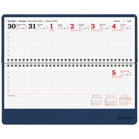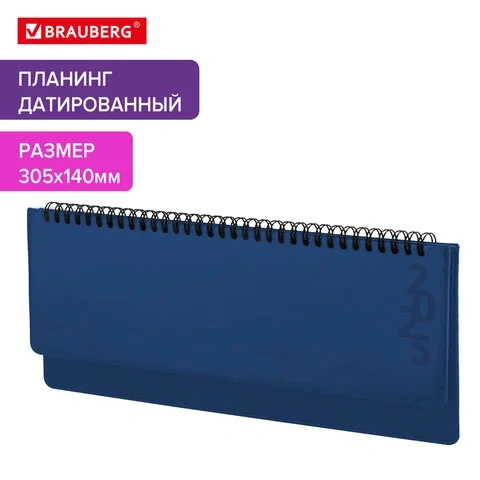Планинг датированный 2025 305х140 мм BRAUBERG 'Up', под кожу, синий, 115704