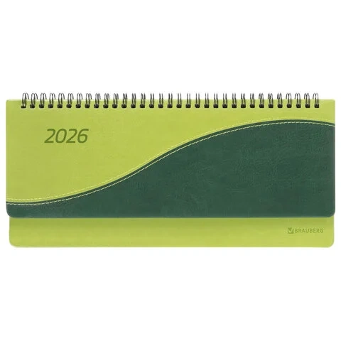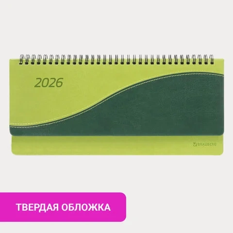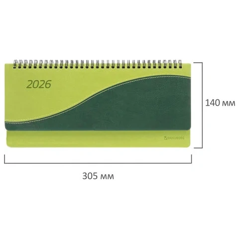 Планинг датированный 2026 305х140 мм BRAUBERG 'Bond', под кожу, светло-зеленый, 117221