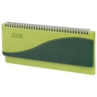 Внутренний блок содержит 60 листов офсетной бумаги белого цвета плотностью 70 г/м2. Обложка из экокожи и твердый переплет обеспечивают долгий срок службы. Для заметок в планинге имеется 11 страниц в конце внутреннего блока. Подходит для горячего тиснения. Скрепление осуществляется с помощью евроспирали. Выполнен в стильном сочетании салатового и зеленого цветов. Размер изделия - 305х140 мм.