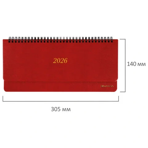 Планинг датированный 2026 305х140 мм BRAUBERG 'Iguana', под кожу, красный, 117225