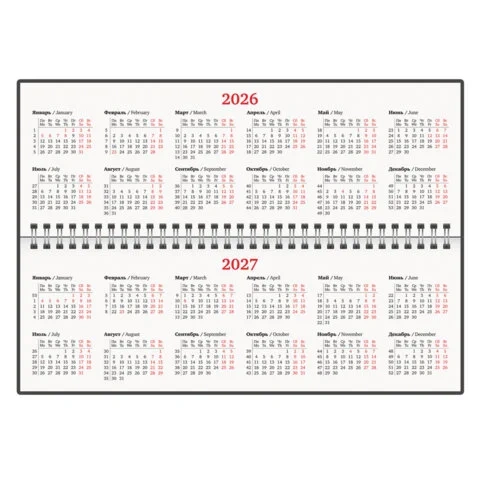 Внутренний блок содержит 60 листов офсетной бумаги белого цвета плотностью 70 г/м2. Обложка из балакрона и твердый переплет обеспечивают долгий срок службы. Для заметок в планинге имеется 11 страниц в конце внутреннего блока. Подходит для тиснения только фольгой. Скрепление осуществляется с помощью евроспирали. Размер изделия – 305х140 мм.