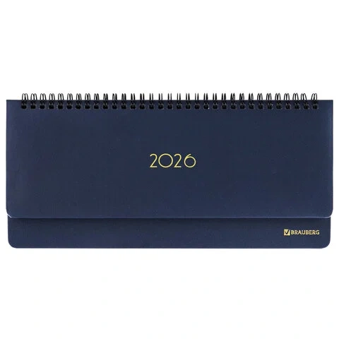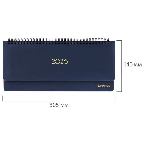 Планинг датированный 2026 305х140 мм BRAUBERG 'Select', под кожу, темно-синий, 117231
