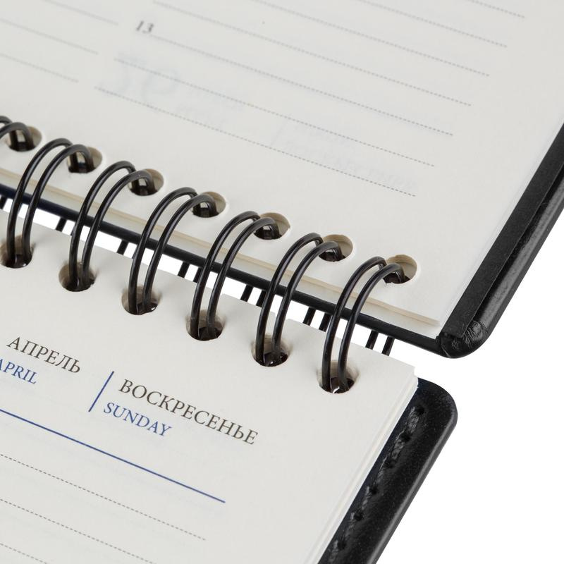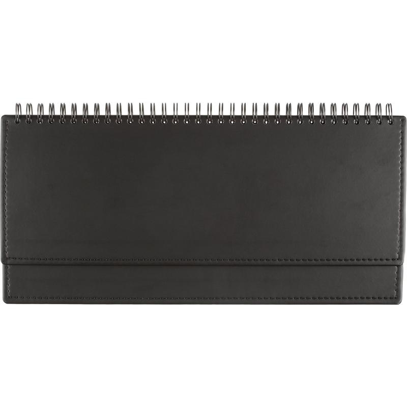 Планинг 2023 датированный 303?150 мм, 60 листов (120 страниц), цвет черный, блок в две краски, офсет 70 г/кв.м (линейка), календарь 2023; планы на год; блок для заметок. Крепление на спирали. Однотонная обложка из высококачественного переплетного материала, гладкий матовый, по периметру отделочная строчка в цвет материала. Возможно нанесение логотипа на обложку любым способом тиснения.