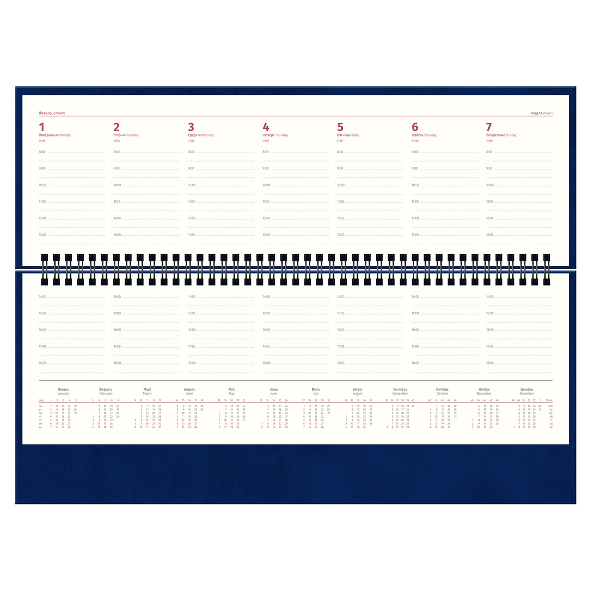 Планинг датированный Berlingo Windsor синий, 330х130мм, 64 листа, под кожу, 2024