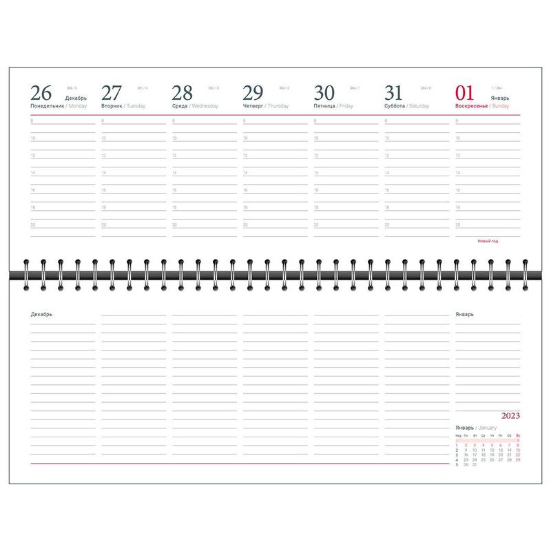 Настольный датированный на 2023 год планинг размером 140?290 мм на спирали будет не только незаменимым помощником в ведении дел, но и станет стильным аксессуаром, отражающим индивидуальность владельца.