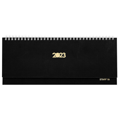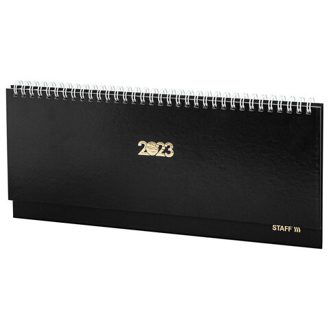 Планинг датированный на 2023 г. 285х112 мм, STAFF, гребень, обложка бумвинил, 64 л., черный, 114201