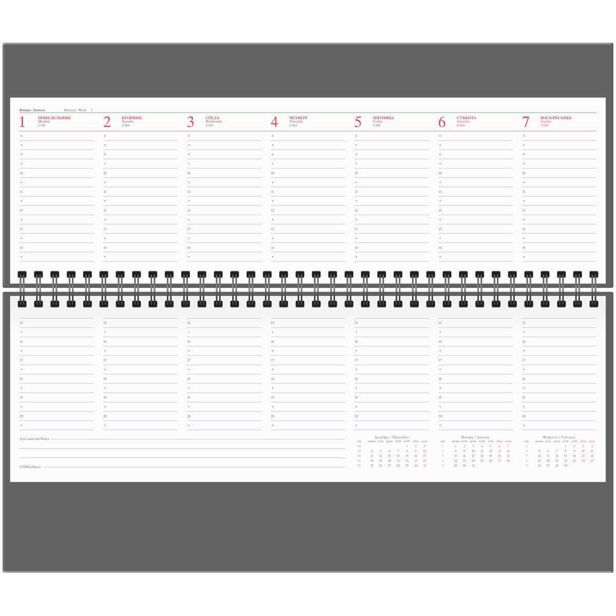 Планинг датированный Officespace Ariane черный, 330х130мм, 64 листа, балакрон, 2024