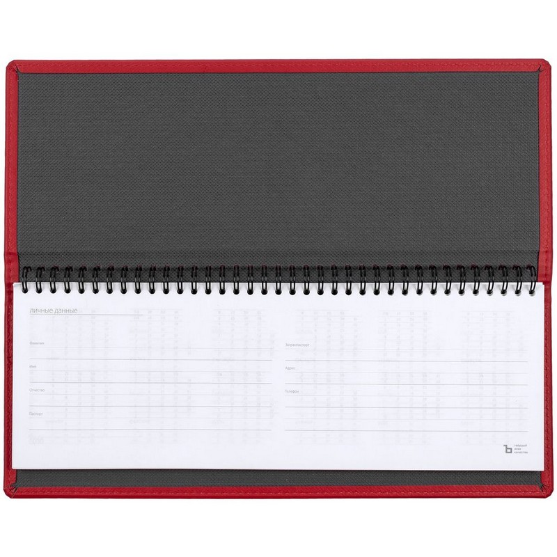 Материал обложки — Latte, красный РР. Блок 942:Кол-во страниц — 128; Бумага — белая, плотность 70 г/м; Полузакрытая пружина. Размер: 33х15 см Материал: искусственная кожа Цвет: красный
