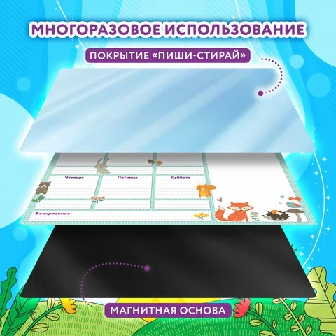 Магнитный планинг имеет многоразовую поверхность 'пиши-стирай', выполненную из ПВХ.