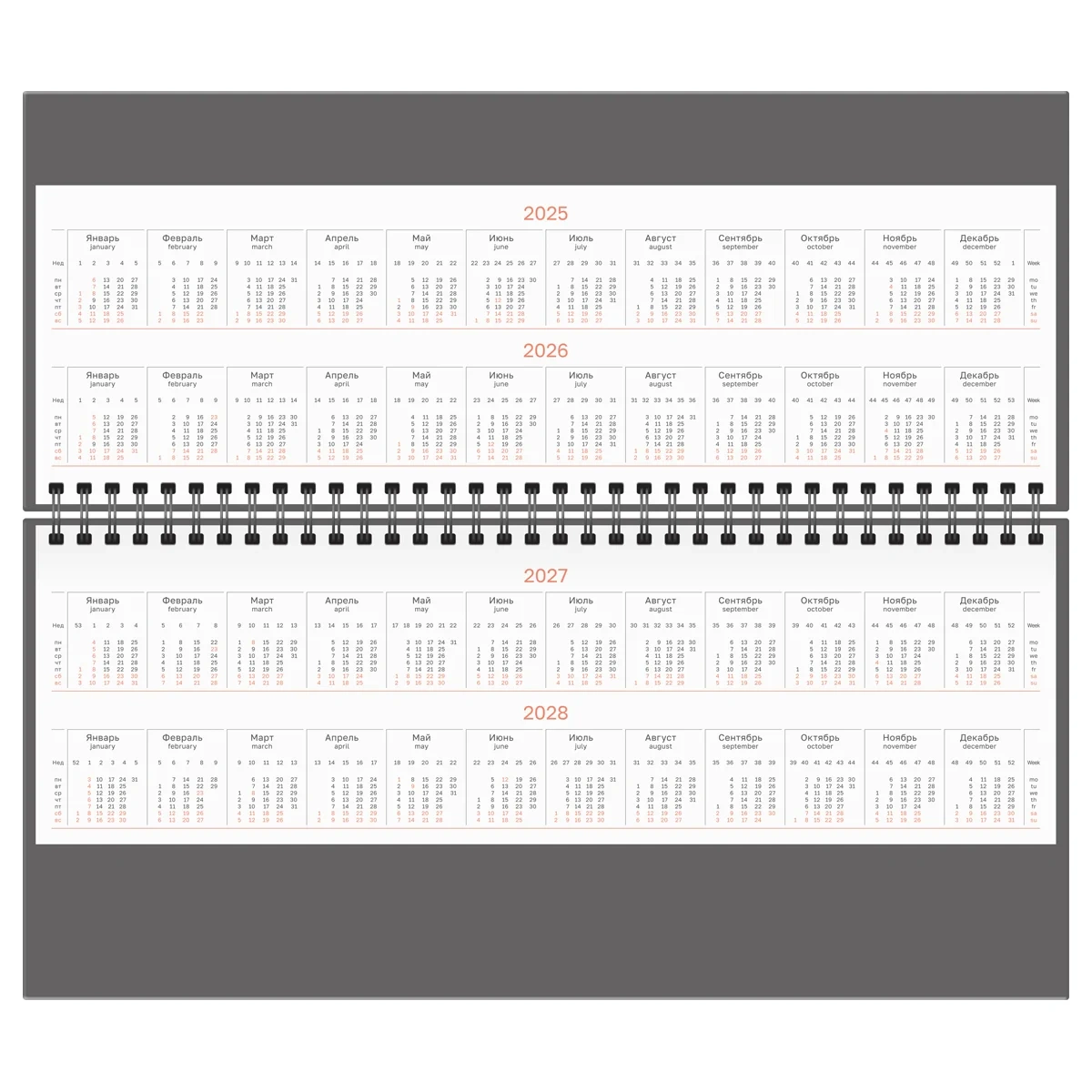 Планинг размером 330*130 мм отлично подходит для хранения на рабочем столе. Тип скрепления «гребень» делает его удобным в использовании, позволяя легко перелистывать страницы и делать записи. Наличие различной справочной информации, календаря и телефонной книжки сделают его использование комфортным. Подходит для всех видов полиграфического тиснения.