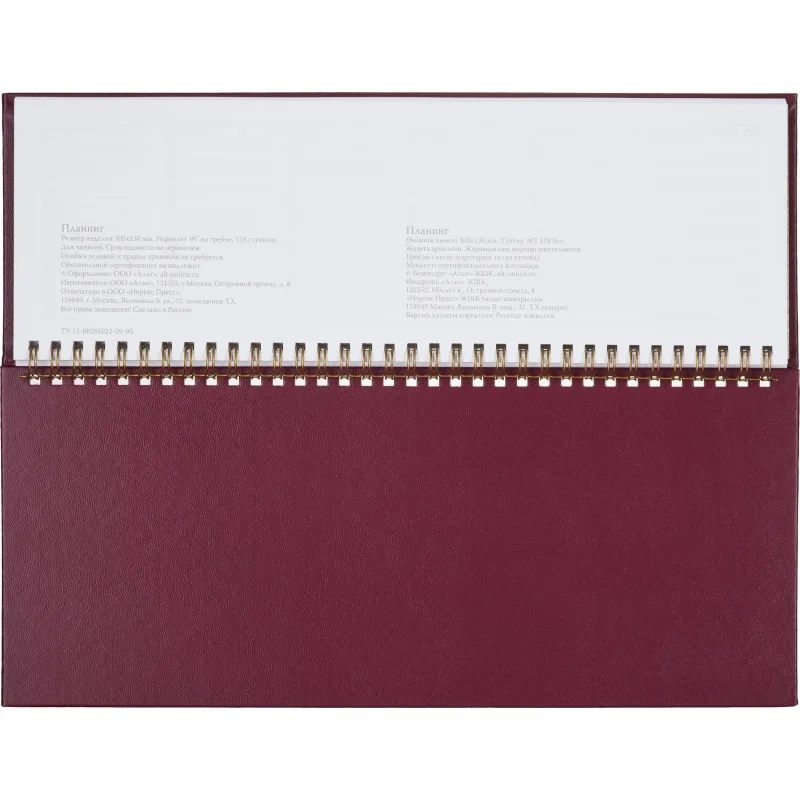 Планинг недатированный Альт Ideal, бордовый, 30.5х13см, 64листа, иск. кожа