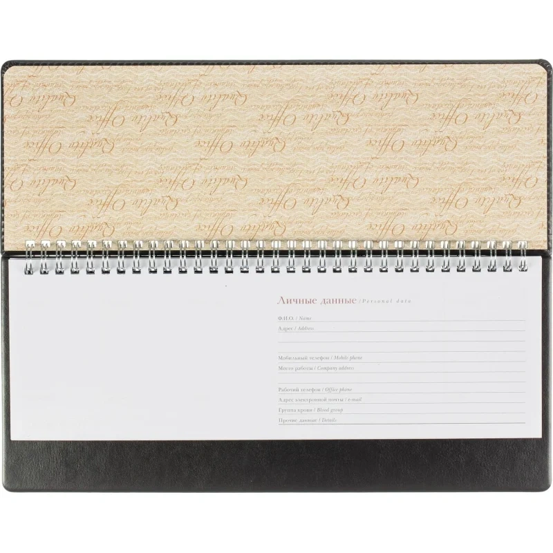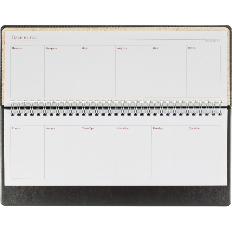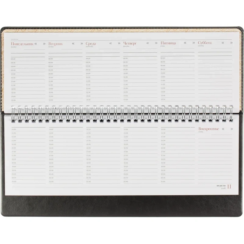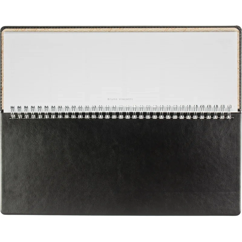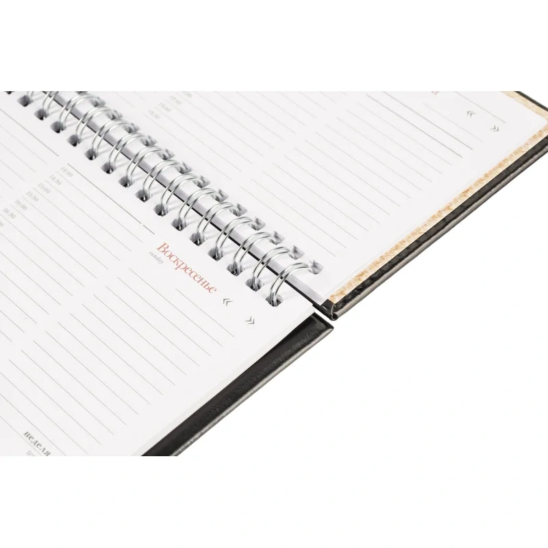 Планинг недатированный из коллекции Sidney Nebraska удобен для планирования рабочего времени, встреч, совещаний, задач. Имеет твёрдую обложку из итальянской искусственной кожи чёрного цвета. На неё можно нанести тиснение, выполнить шелкографию или УФ-печать. Универсальный офисный стиль планинга дополнен реальным швом по периметру в цвет материала. Спиральный тип крепления позволяет легко перелистывать страницы и удалять ненужные. Благодаря компактному размеру (305×130 мм) и скруглённым уголкам планинг можно брать с собой в дорогу: он не займёт много места и не повредит подкладку сумки или портфеля. Предусмотрен информационный блок, который включает страницы с личными данными, часовыми поясами, аэропортами Европы и прочие справочные данные.