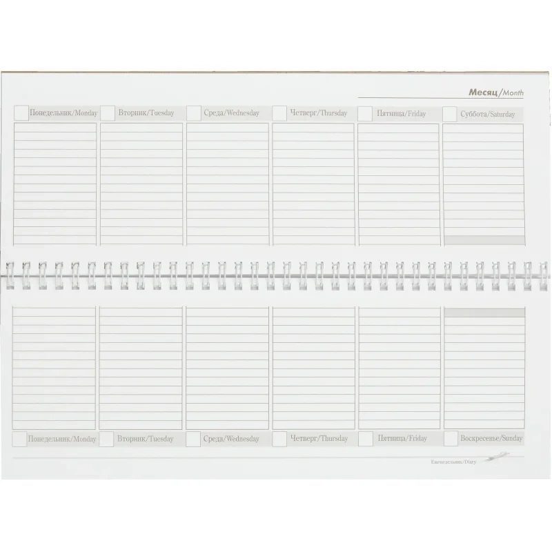 Недатированный планинг Attache Economy предназначен для эффективного планирования встреч, совещаний, структурирования задач и фиксации прочих предстоящих событий. Мягкая обложка выполнена из картона и имеет лакированное покрытие. Эмоциональный яркий дизайн включает изображение кремля, герба и флага Российской Федерации. Возможно нанесение тиснения фольгой или шелкографией, тампопечатью. Размеры изделия составляют 295×100 мм. Блок крепится на спираль. Внутренний блок выполнен из высококачественного офсета. Планинг содержит календарь на 4 года (2022-2025), а также таблицу с кодами междугородной телефонной связи и поле для заметок.