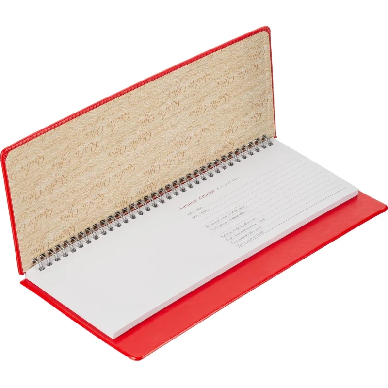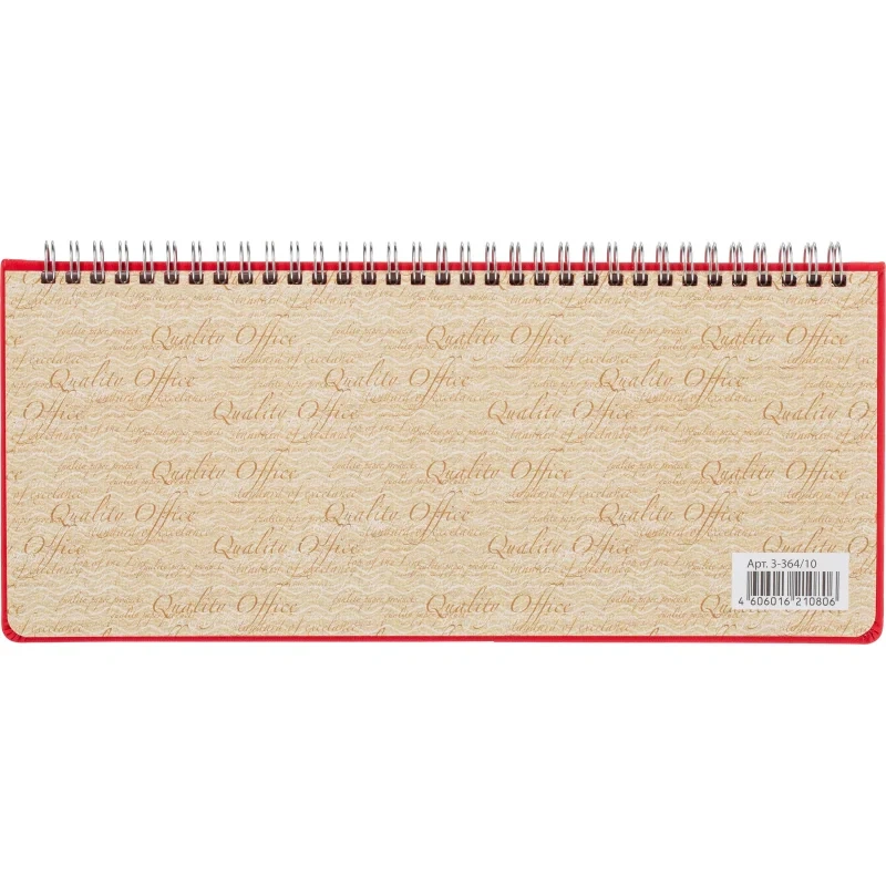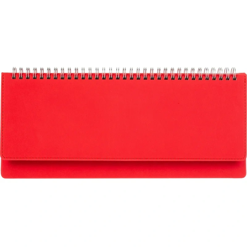Планинг недатированный Attache Velvet Soft Touch искусственная кожа 305x130 мм 64 листа красный. Недатированный планинг практичен и надёжен: он позволит систематизировать ежедневные дела по степени важности и по времени выполнения. Твёрдая обложка из искусственной кожи с нежной и приятной на ощупь текстурой отстрочена по периметру нитью в цвет. Она выполнена в универсальном офисном стиле, поэтому планер станет аксессуаром, подчёркивающим деловой образ. Уголки у обложки скруглённые, поэтому планинг удобно брать с собой: он не повредит подкладку у сумки или портфеля. Размер блока составляет 295х100 мм, общий размер планера - 305x130 мм. Крепление сделано на гребне, что позволяет открывать планинг на 180 градусов. Цвет страниц - белый с двухцветной печатью, плотность - 70 г/кв. м. Подходит для персонализации.