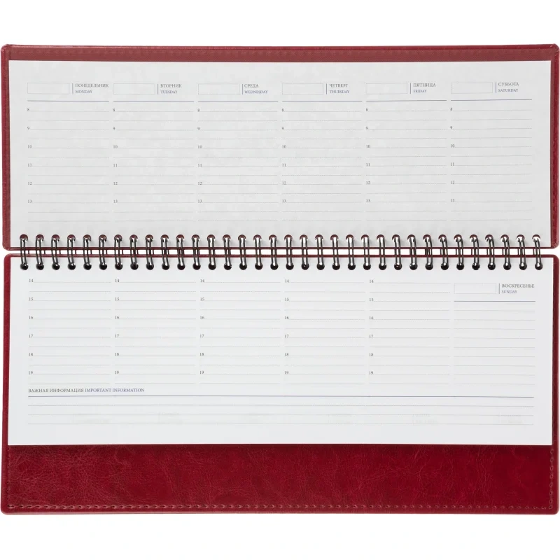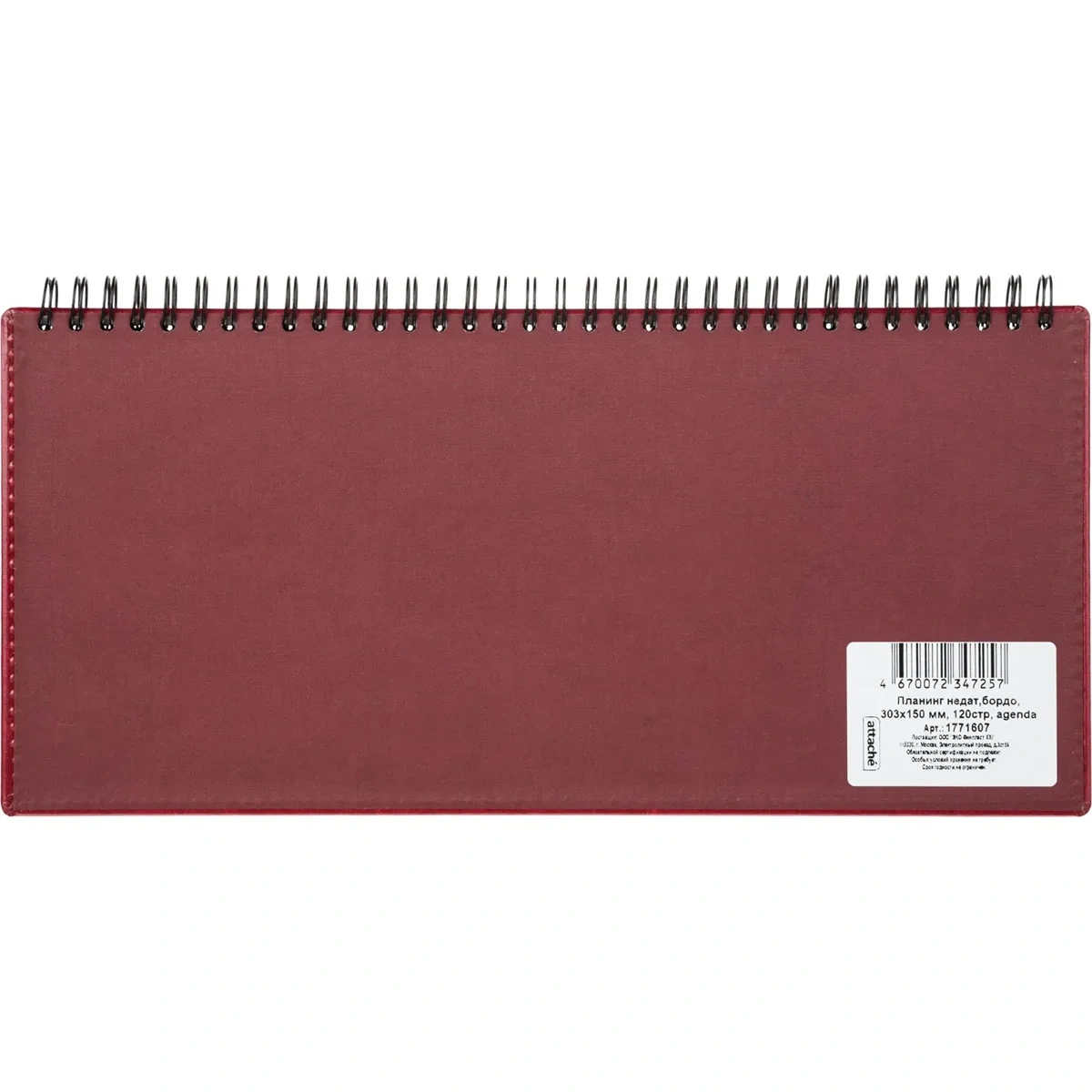 Планинг Attache Agenda — стильный и практичный аксессуар, который поможет правильно распланировать своё время. Твёрдая обложка из искусственной кожи бордового цвета придаёт изделию элегантный вид и делает его приятным на ощупь. Дизайн выполнен в универсальном офисном стиле. Изделие имеет компактный размер (30.3×15 см), поэтому его удобно носить с собой в сумке или портфеле. Крепкая спираль надёжно удерживает листы и помогает удалять ненужные. Планинг Attache Agenda — это идеальный выбор для студентов, школьников, офисных менеджеров и всех тех, кто ищет надёжный и функциональный способ фиксирования задач и планов.