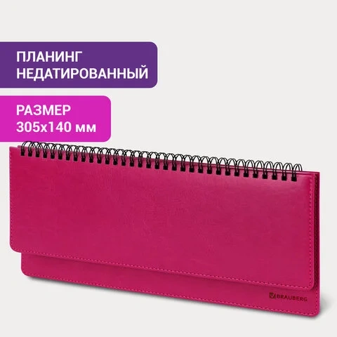 Планинг недатированный Brauberg Rainbow розовый, 30.5х14см, 60 листов, кожзам