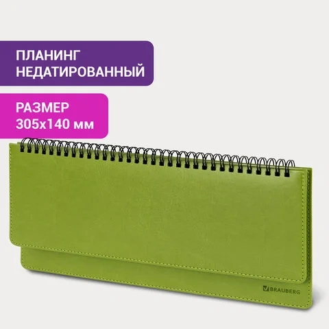 Планинг недатированный Brauberg Rainbow зеленый, 30.5х14см, 60 листов, кожзам