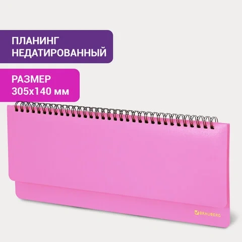 Планинг недатированный Brauberg Select розовый, 30.5х14см, 60 листов, балакрон