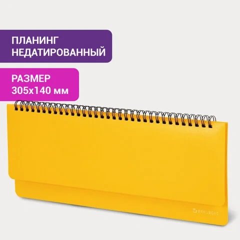 Планинг недатированный Brauberg Select желтый, 30.5х14см, 60 листов, балакрон