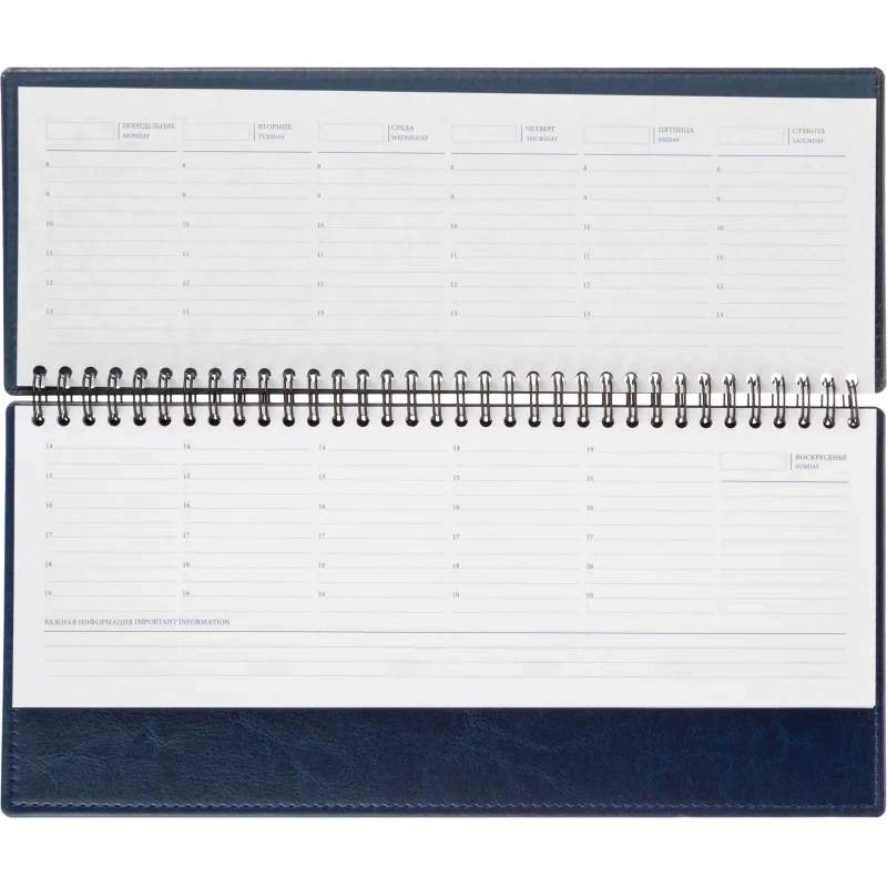 Планинг Attache Agenda — стильный и практичный аксессуар, который поможет правильно распланировать своё время. Твёрдая обложка из искусственной кожи синего цвета придаёт изделию элегантный вид и делает его приятным на ощупь. Дизайн выполнен в универсальном офисном стиле. Изделие имеет компактный размер (30.3×15 см), поэтому его удобно носить с собой в сумке или портфеле. Крепкая спираль надёжно удерживает листы и помогает удалять ненужные. Планинг Attache Agenda — это идеальный выбор для студентов, школьников, офисных менеджеров и всех тех, кто ищет надёжный и функциональный способ фиксирования задач и планов.