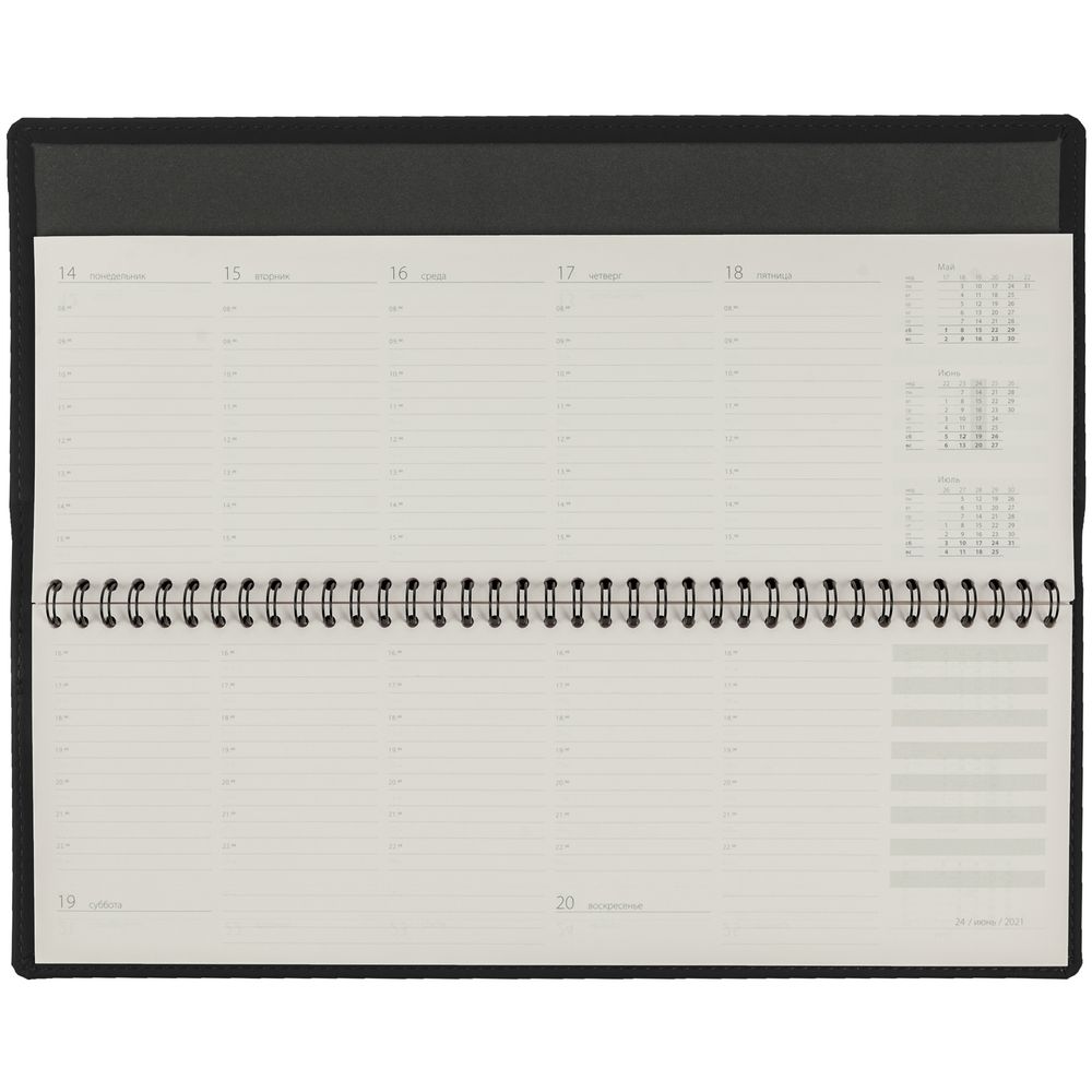 Материал обложки — Soft Touch, черный АА. Блок 941: датирован на 2021 год. Кол-во страниц — 128; Бумага — тонированная, плотность 70 г/м; Закрытая пружина. Размер: 33,5х13 см Материал: покрытие софт-тач Цвет: черный