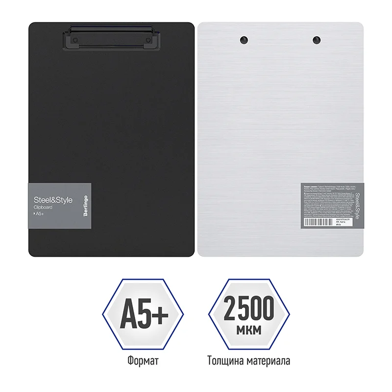 Планшет с зажимом Berlingo 'Steel&Style' A5+, 2500мкм, пластик (полифом), белый