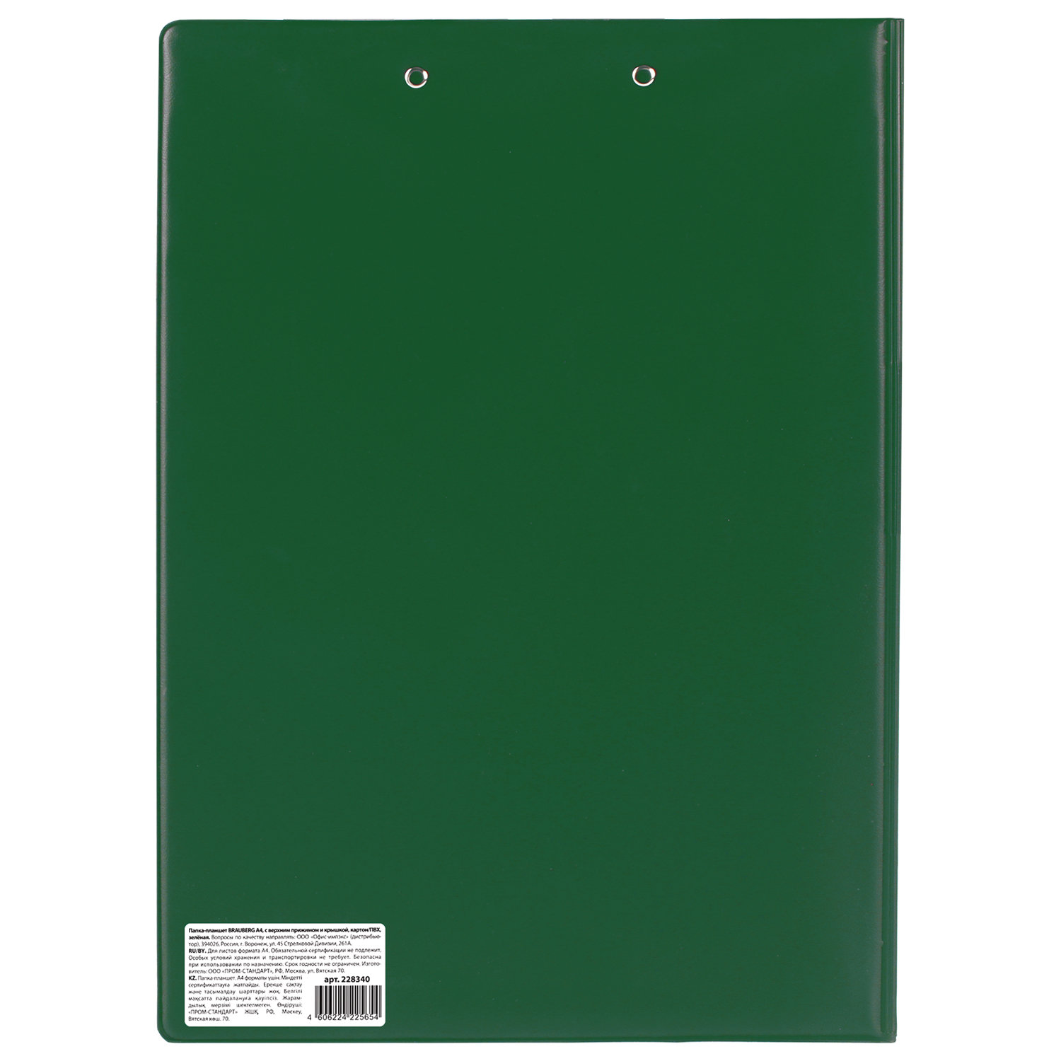 Папка-планшет с зажимом Brauberg А4, зеленая, с крышкой