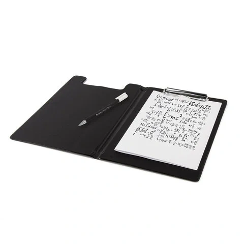 Папка-планшет формата А5 с верхним прижимом и крышкой фиксирует до 90 листов. Изготовлена из плотного картона толщиной 4 мм с покрытием из износоустойчивого ПВХ, что позволяет комфортно делать записи на весу. Металлический прижим обеспечивает плотное прилегание документов, а верхняя крышка надежно защищает ваши документы от пыли, влаги и других негативных факторов внешней среды.