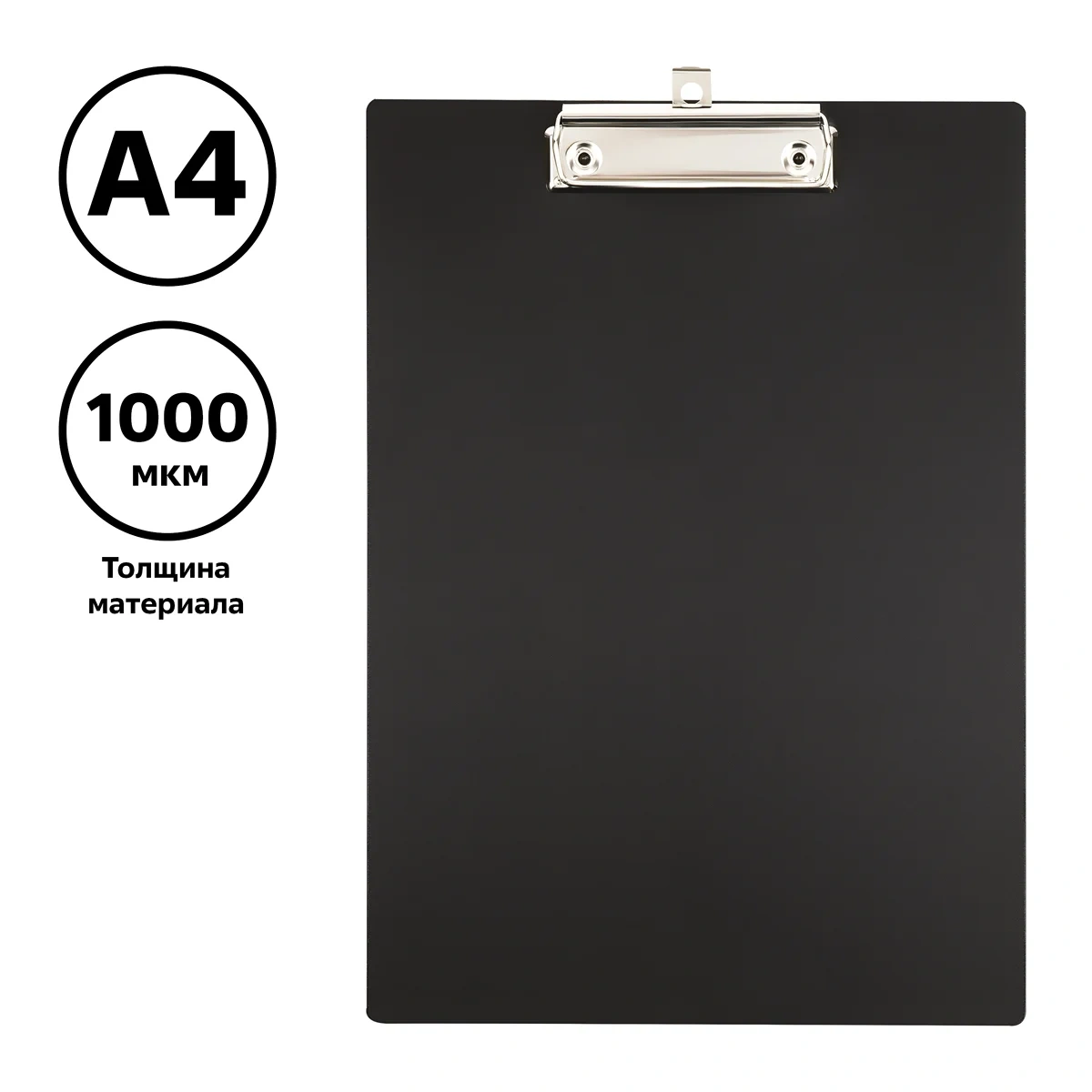 Планшет с зажимом СТАММ А4, 1000 мкм, пластик, черный