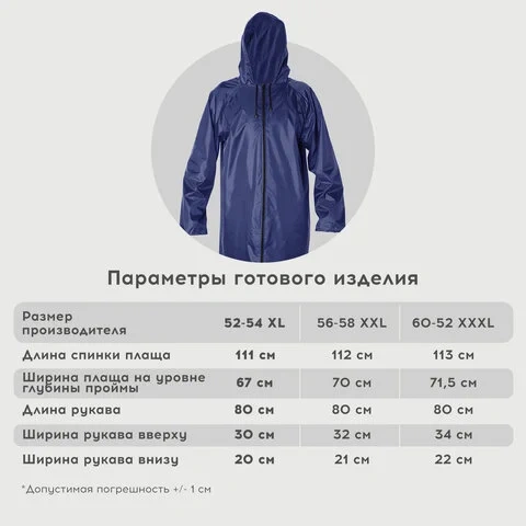 Плащ-дождевик синий на молнии многоразовый с ПВХ-покрытием, размер 60-62 (XXXL), рост 170-176, ГРАНД