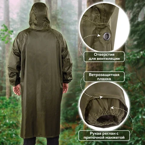 Плащ-дождевик цвета хаки на молнии многоразовый с ПВХ-покрытием, размер 60-62 (XXXL), рост 170-176,