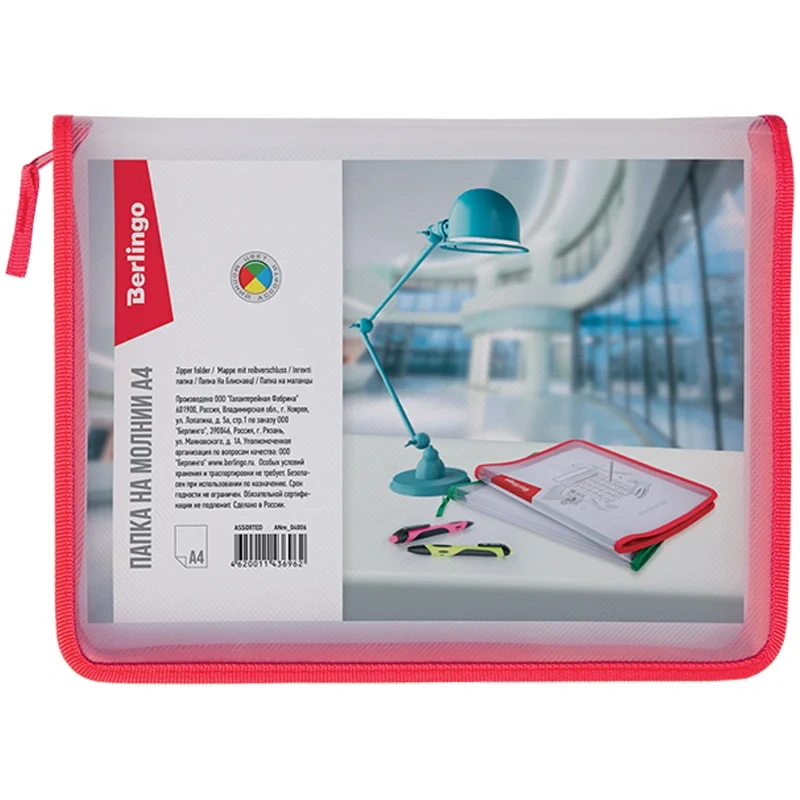 Пластиковая папка на молнии Berlingo прозрачная ассорти, А4, 500мкм