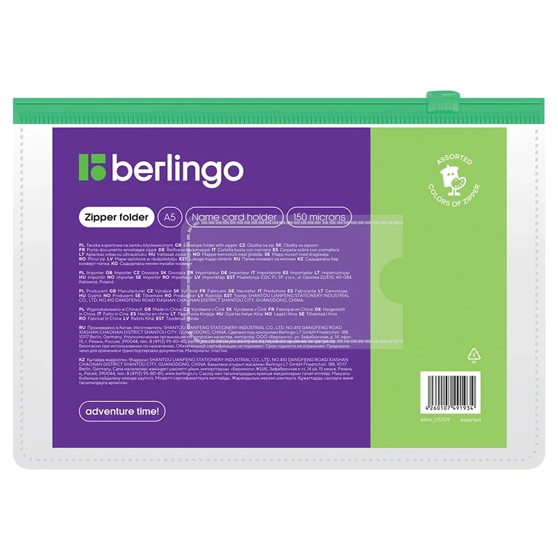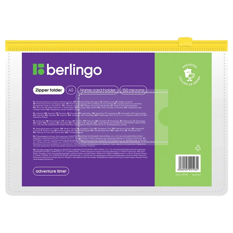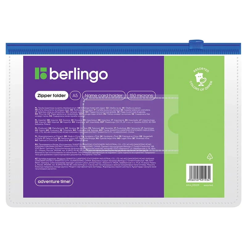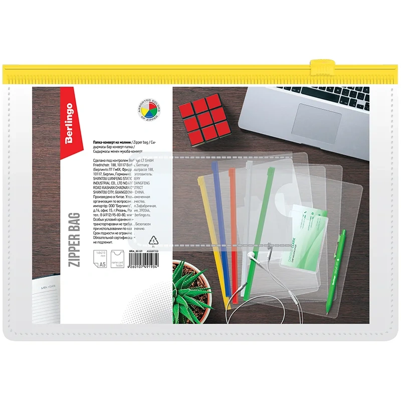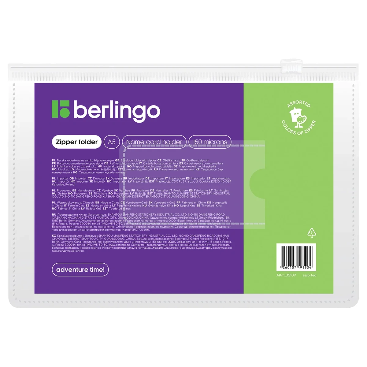 Пластиковая папка на молнии Berlingo прозрачная ассорти, А5