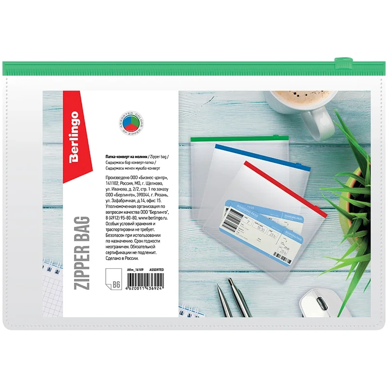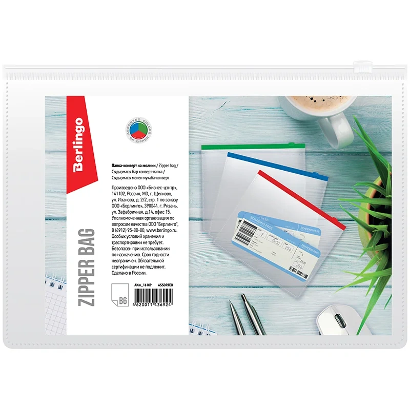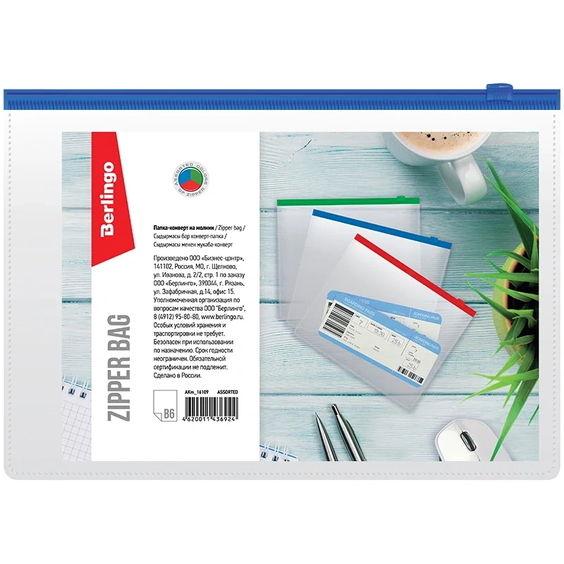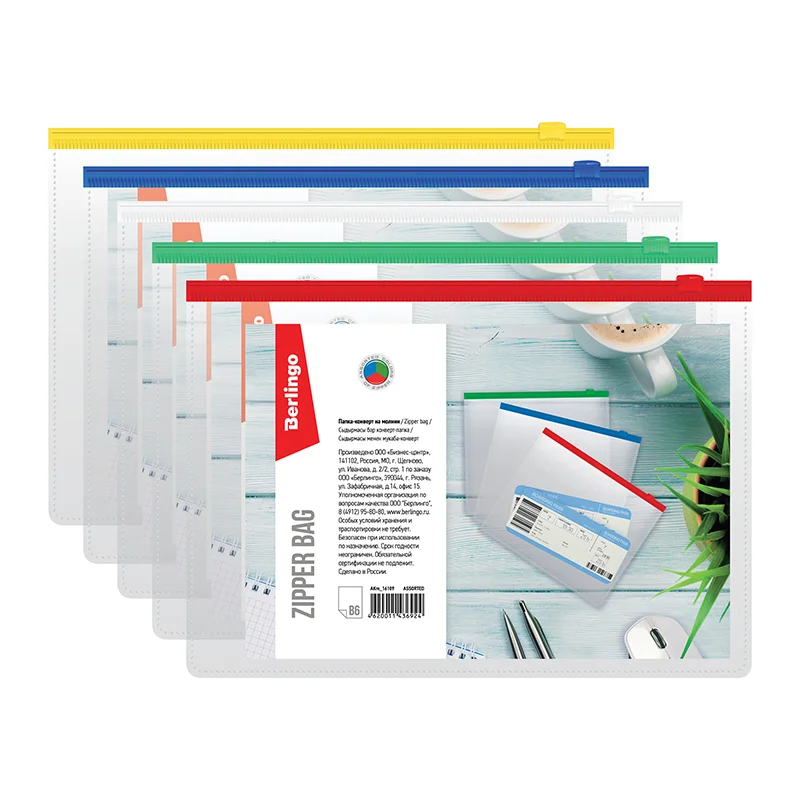 Пластиковая папка на молнии Berlingo прозрачная ассорти, В5